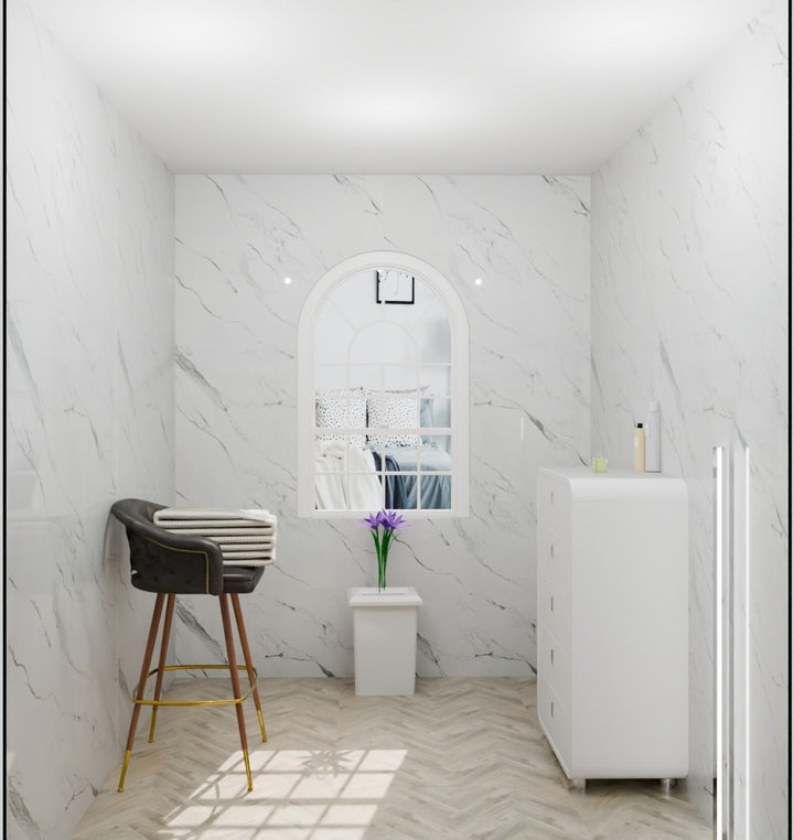 This marble effect shower panel features a stunning coloured shimmer vein, creating an authentic and sophisticated look. Its striking design adds a modern touch to any bathroom